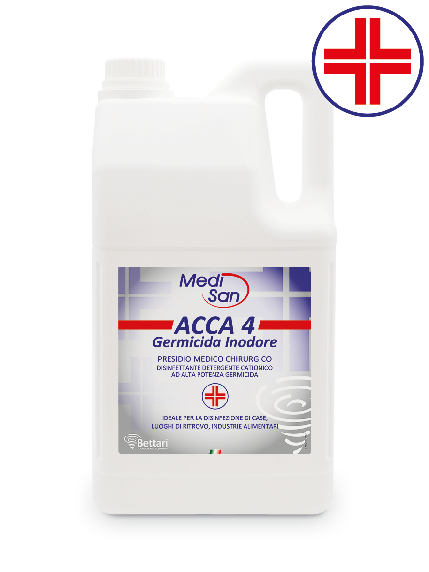 Disinfettante detergente cationico ad alta potenza germicida ad uso esterno. Ideale per la disinfezione di case, luoghi di ritrovo, nettezza urbana, industrie alimentari (macelli, caseifici, industrie conserviere) si presta ad una radicale disinfezione di attrezzature fisse e mobili, impianti e superfici a contatto con sostanze alimentari