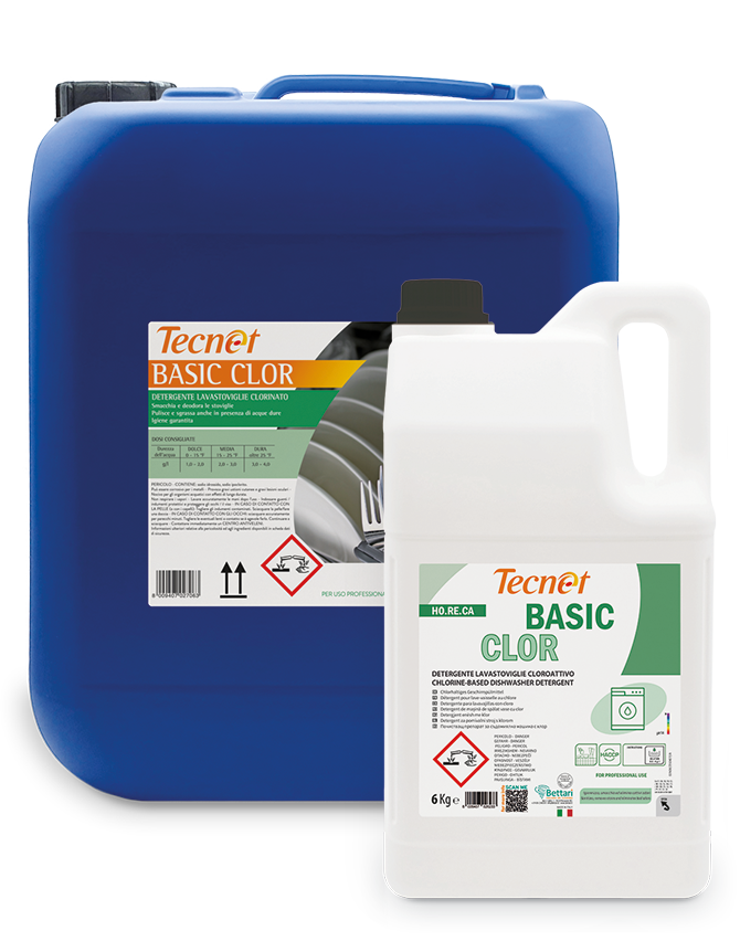 Detergente liquido cloroattivo per sgrassare, smacchiare e deodorizzare in macchine lavastoviglie e lavabar.