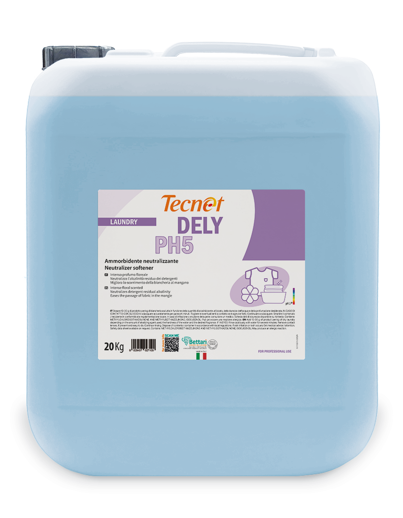 Favorisce un minore trattenimento d’acqua nei tessuti dopo lo scarico e la centrifuga, consentendo risparmi di tempo ed energia nell’ asciugatura. Formulato con proprietà lubrificanti, riduce la formazione e il distacco della peluria negli asciugatoi rotativi, aumentando la scorrevolezza dei tessuti durante la stiratura. Prodotto destaticizzante, opera una riduzione della carica elettrostatica sulle fibre favorendo le operazioni di piegatura ed evitando arrotolamenti al mangano. Formulazione a bassa viscosità, consente l’utilizzo con dosatori automatici o pompe peristaltiche. Profumazione intensa, persiste sulle fibre anche dopo
