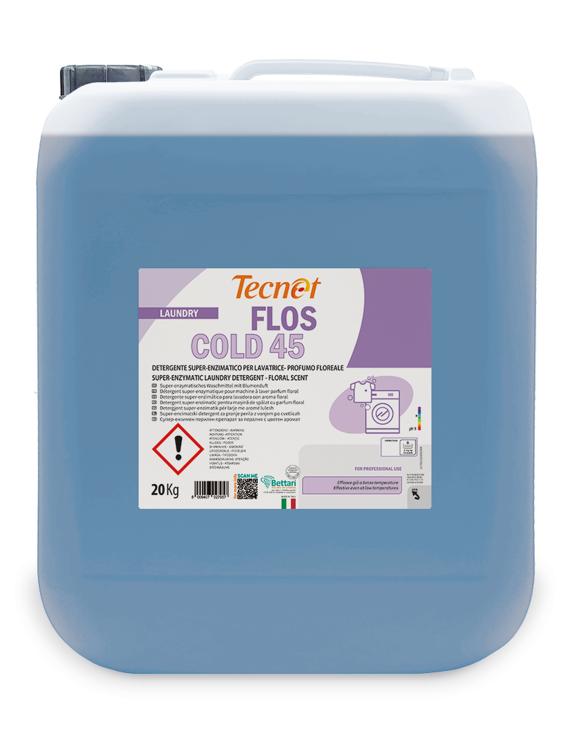 Formulato basato su una miscela di 5 enzimi: 1. Enzima amilasi: attivo sulla degradazione delle macchie di amido e derivati come amido del riso e mais; 2. Enzima lipasi: facilita la degradazione delle macchie di unto e grasso di varia natura come olio, burro, sebo umano; 3. Enzima proteasi: agisce su macchie colorate di natura proteica come uovo, sangue, latte; 4. Enzima pectasi: agisce sulla pectina, polisaccaride componente della frutta. 5. Enzima cellulasi: agisce sulla cellulosa e protegge il cotone dall’invecchiamento ripristinando il tessuto sfibrato. Ha azione antiridepositante dello sporco sui tessuti nella fase di lavaggio che evita l’ingrigimento delle fibre migliorandone la luminosità. Tale azione consente di mantenere i bianchi a lungo e protegge i colori dei capi neri e colorati. L’elevata concentrazione degli enzimi e di tensioattivi non schiumogeni permette al prodotto di essere estremamente efficacie già in acqua fredda, consentendo l’utilizzo anche su capi colorati e delicati. Prodotto studiato per essere dosato automaticamente nelle lavanderie, può essere utilizzato in combinazione con sbiancanti a base di ossigeno in fase di lavaggio. Si consiglia di utilizzare il prodotto ad una temperatura di 45°C e, comunque, non superiore ai 60°C.