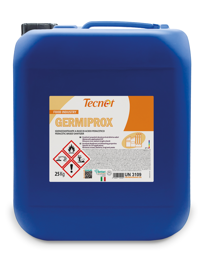 Soluzione contenente acido peracetico, acido acetico e perossido di idrogeno stabilizzata all’equilibrio per garantirne l’efficacia nel tempo. Il prodotto ha ottime proprietà deodoranti, decoloranti e igienizzanti e risulta idoneo per tutte le applicazioni CIP. E’ raccomandato per l’utilizzo in impianti per il riempimento e il risciacquo delle bottiglie prima del confezionamento. L’elevata sciacquabilità è una garanzia di sicurezza per tutte le produzioni alimentari. Il prodotto può essere utilizzato anche per l’igienizzazione di superfici, attrezzature, miscelatori e cisterne.